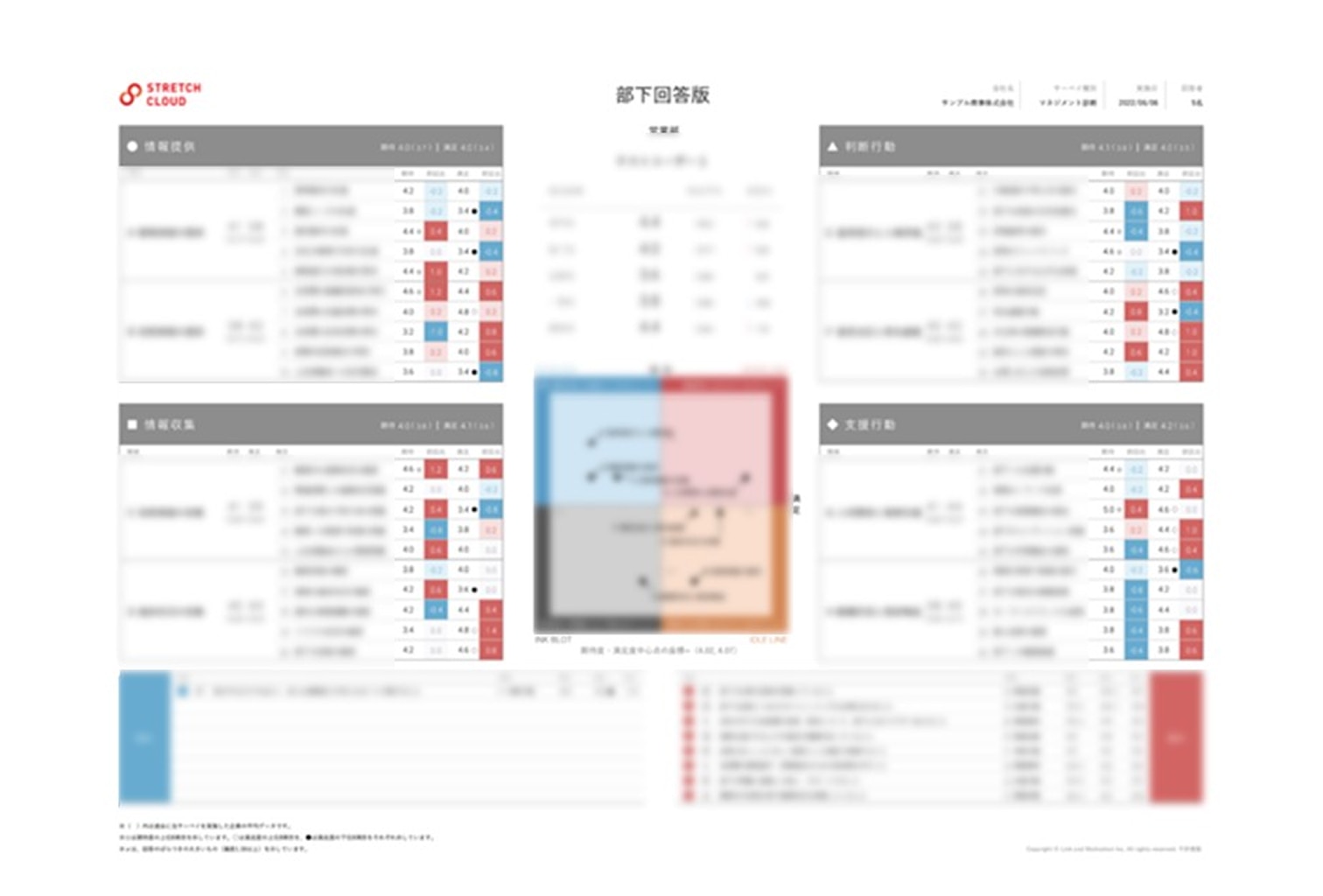 多面評価・項目比較・経年比較など、さまざまな角度からの分析が可能です。個人の状態を分析することにより、各個人のスキル発揮度を把握し、成果創出に向けた改善すべき課題を明確にします。