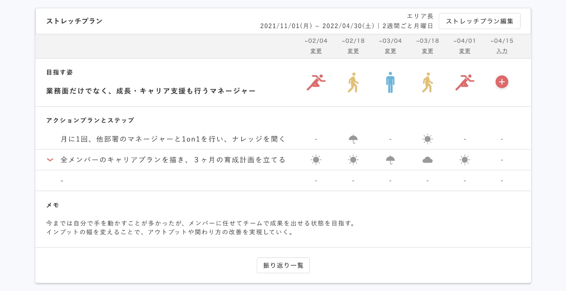 個々のニーズに合わせた動画コンテンツの配信やAIによる進捗サポート機能が備わっています。また、上司が本人の改善課題や施策進捗を確認できるなど、適切なタイミングで上司から実践支援を行える仕組みが備わっています。