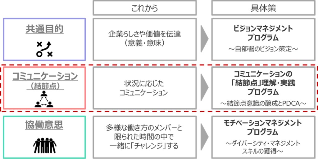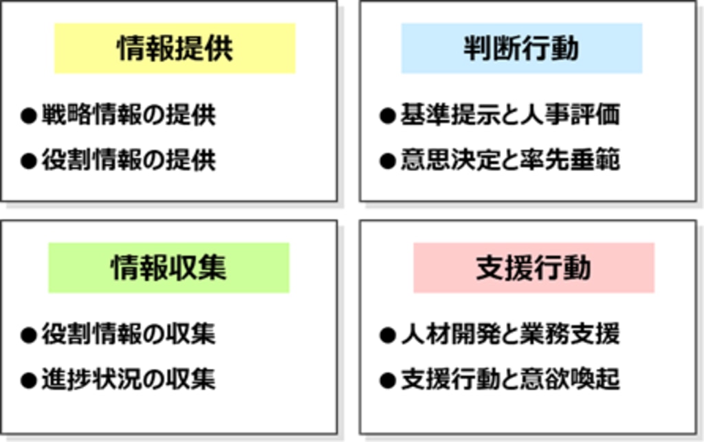 - 役割情報の提供:自社のビジョンと自部署の目標・個々の業務を接続するマネジメント接続スキル