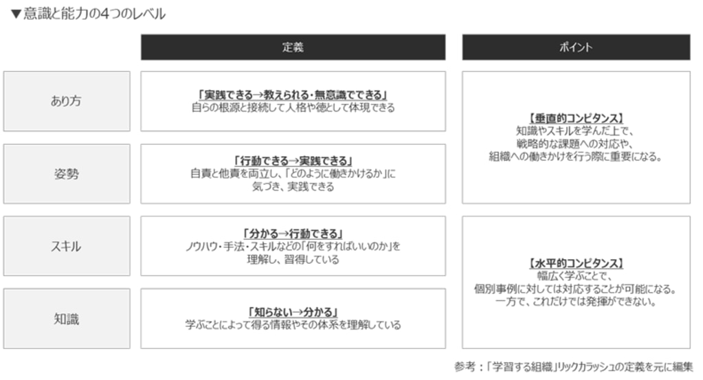 また、「姿勢」の習得においては、各現場や組織の構成員によって判断結果は異なるため、360度サーベイや組織サーベイを用いて、繰り返し効果検証と課題設定を行うことが重要です。