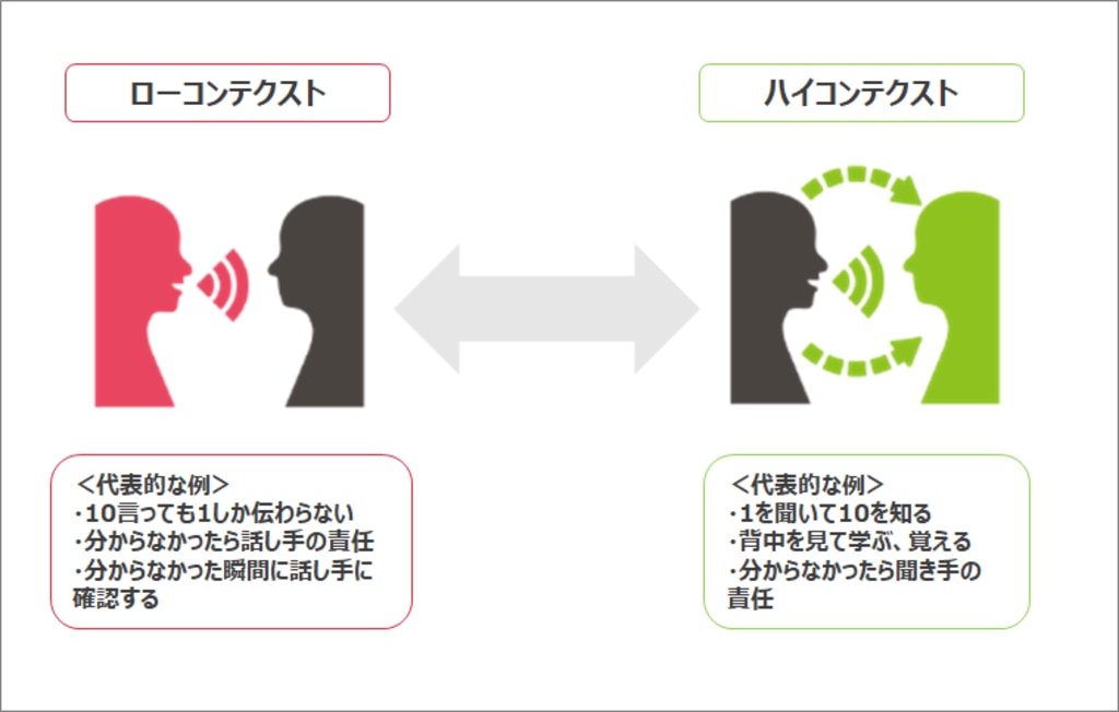 前コラムの「異文化コミュニケーションとは?」で、日本人の特徴について触れていますが、相手を感化するためのコミュニケーション方法が、ハイコンテクスト過ぎると、日本の文化背景を持たない非日本人には伝わらない可能性があります。