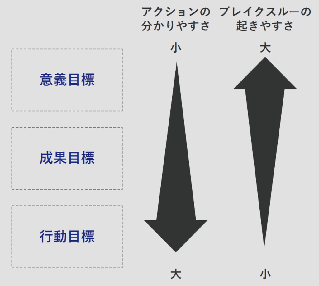 目標の設定の仕方にはいくつかポイントがありますが、 下図のようなメリットデメリットを踏まえて考えることが重要です。