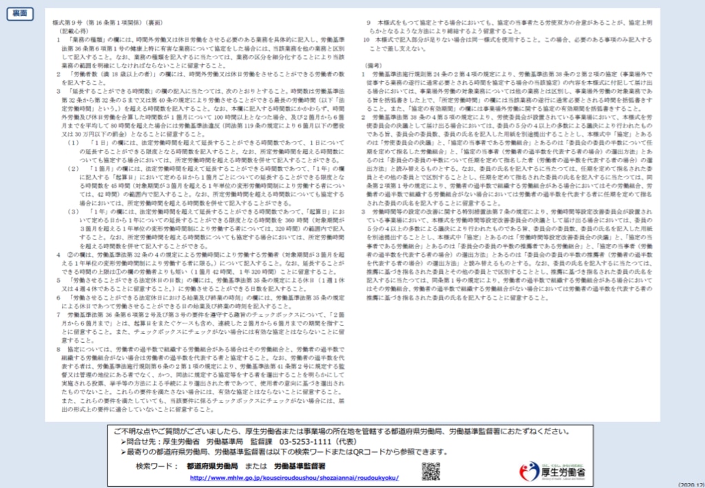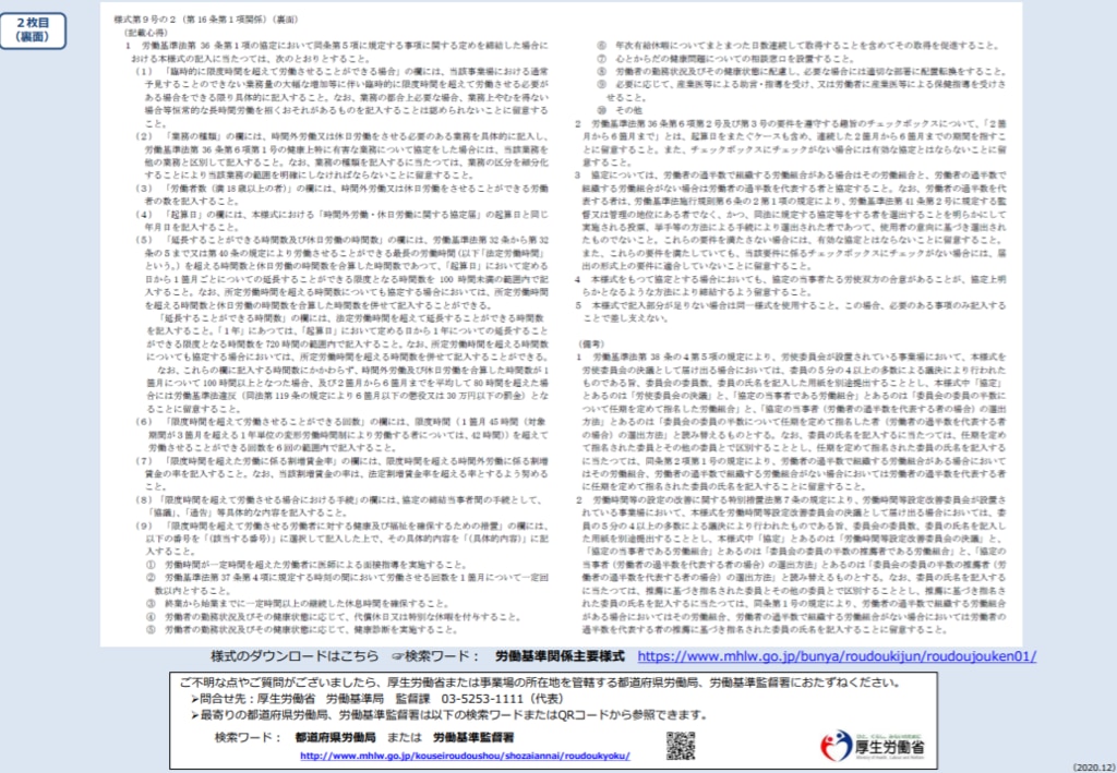 通常、利用することが多いのは一般条項である「様式第9号」と、特別条項を定める場合の「様式第9号の2」です。各様式は以下からダウンロードしていただけます。