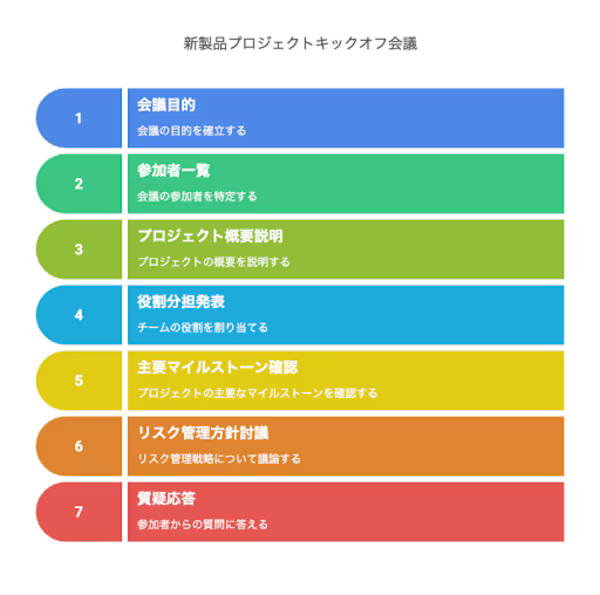 アジェンダの明確な構造は、参加者が目的に集中し、時間内に具体的な成果に到達することを可能にします。会議の成功は、しっかりと計画され、十分に考え抜かれたアジェンダの作成に大きく依存していると言えるでしょう。