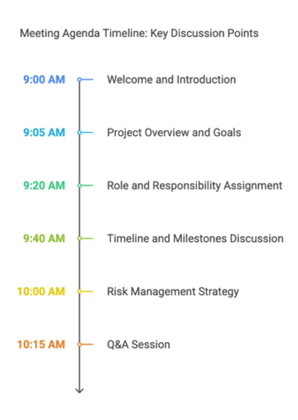 これにより、話し合いが生産的になり、意思決定プロセスがスムーズに進みます。また、会議の範囲を制限し、余計な議論や脱線を防ぎます。重要な議題が適切に時間を割り当てられ、効率的に対処されることで、会議は目標達成に向けて前進します。