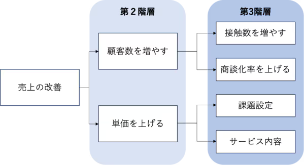この方法により、問題の原因や解決策を系統的に特定することができます。また、ロジックツリーは、問題の全体像を把握するのに役立ち、どの部分に焦点を当てるべきか、どの要素が最も重要かを明確にするのに有効です。