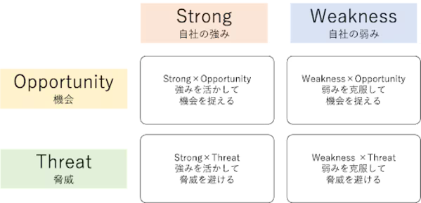 例えば、強みを活用して機会を捉える戦略や、弱みを補完して脅威に対処する戦略など、複数の要因を組み合わせて戦略を考えることができます。クロスSWOT分析を行うことで、企業は自社の事業を成長させる方向性をより明確にしやすくなるでしょう。