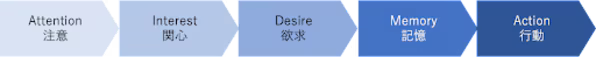 AIDMAは、消費者の購買プロセスを表すモデルで、「Attention(注意)」、「Interest(興味)」、「Desire(欲求)」、「Memory(記憶)」、「Action(行動)」の5つのステップから成り立っています。