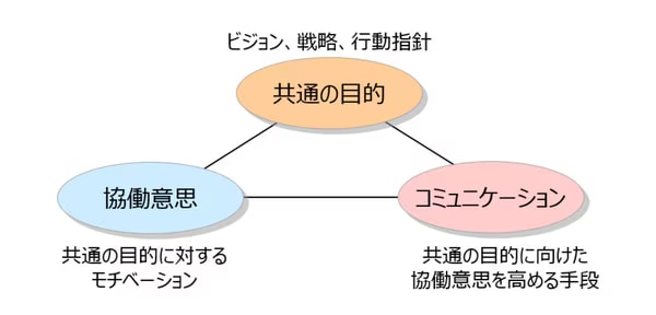 アメリカの経営学者チェスター・バーナードによると組織の成立要素は「共通の目的」「協働意思」「コミュニケーション」の3つがあると言われています。 それぞれ企業経営においてどのような意味を持っているのか説明します。