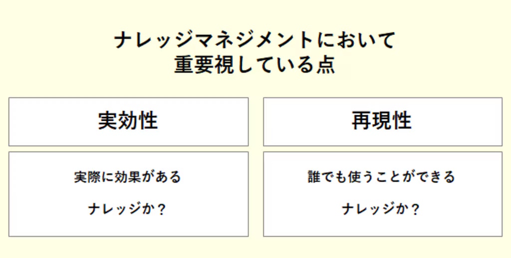 「実効性」とは一言でいうと「実際に効果があるナレッジか」ということです。