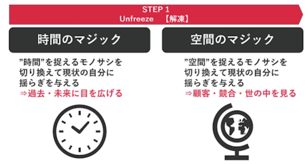 そこで、変化に対する懸念払拭や興味喚起を行い、共感を得ます。(Unfreeze)その上で、変化させたい方向性を明示し、(Change)変化し切るための仕組みづくりを行うことが重要なのです。(Refreeze)