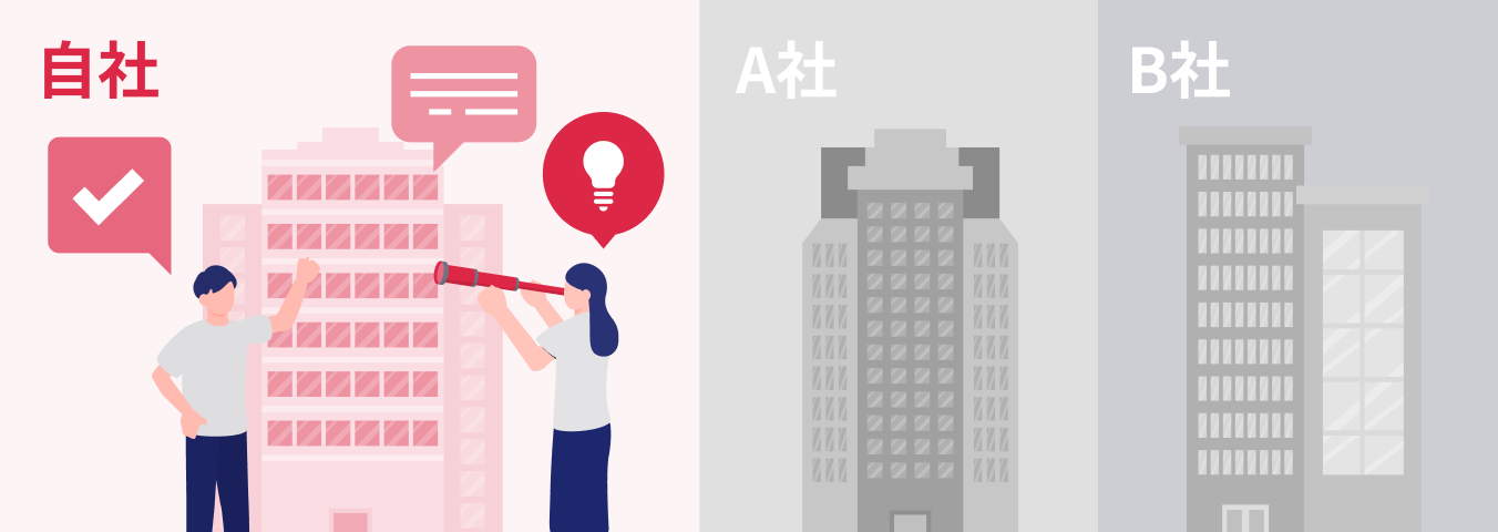 他社との比較をもとに、自社らしさの抽出やメッセージの言語化を行います。