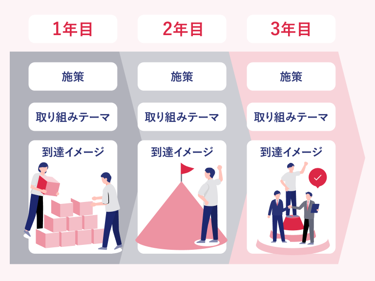 人的資本経営戦略を策定し、その実現に向けた中長期の施策ロードマップまでご提案します。