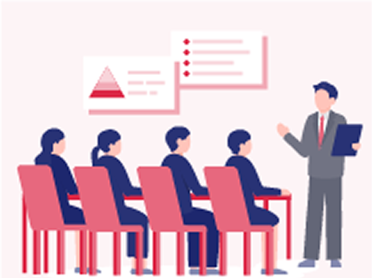 いただいた情報をもとに、実現すべき状態を設計した上で、研修の内容をカスタマイズし、講師のアサインを行います。