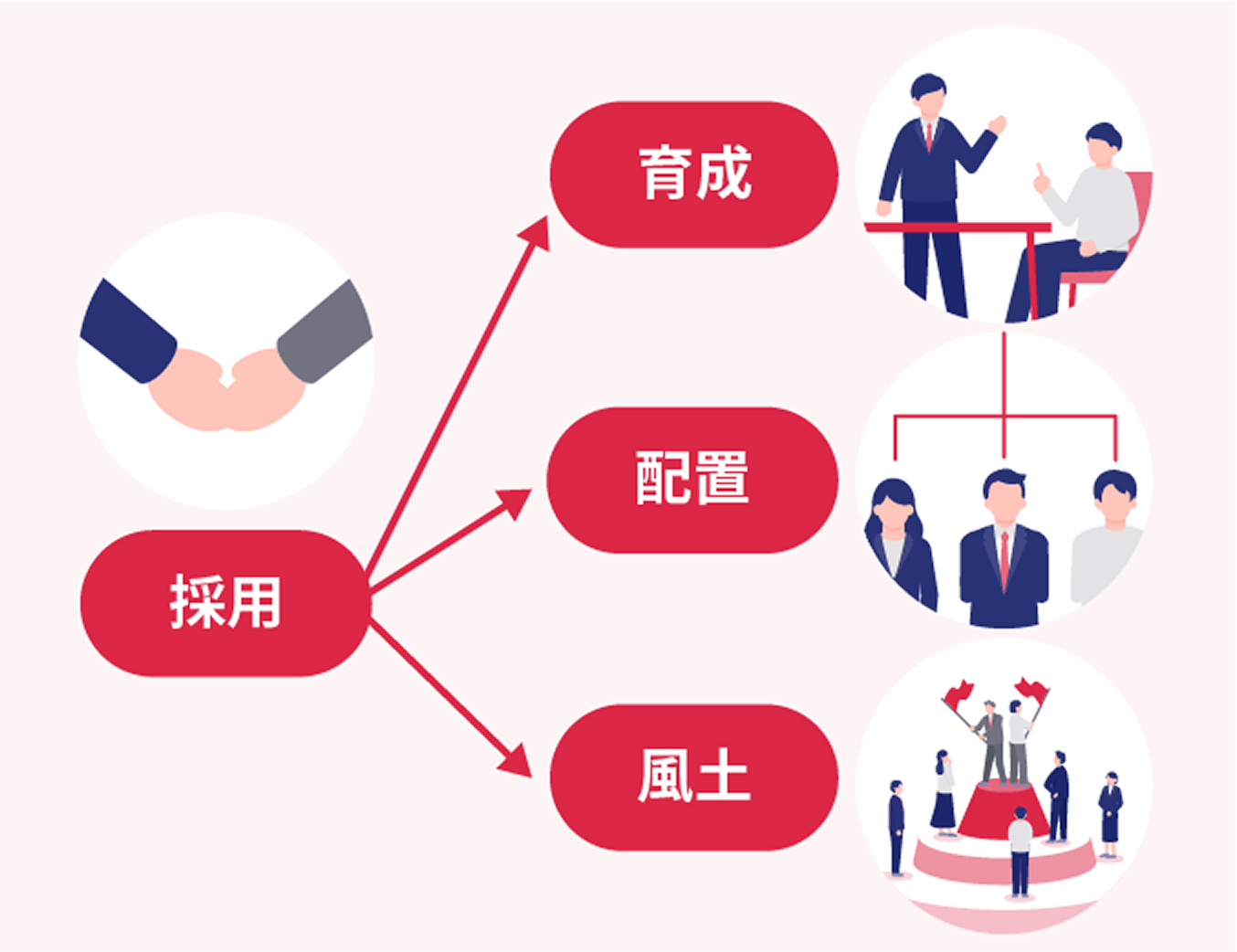 採用戦略だけでなく、育成や定着、理念、制度…といった他人事施策と連動させることで、一貫性のある採用を実現し、エンゲージメント向上に繋げます。