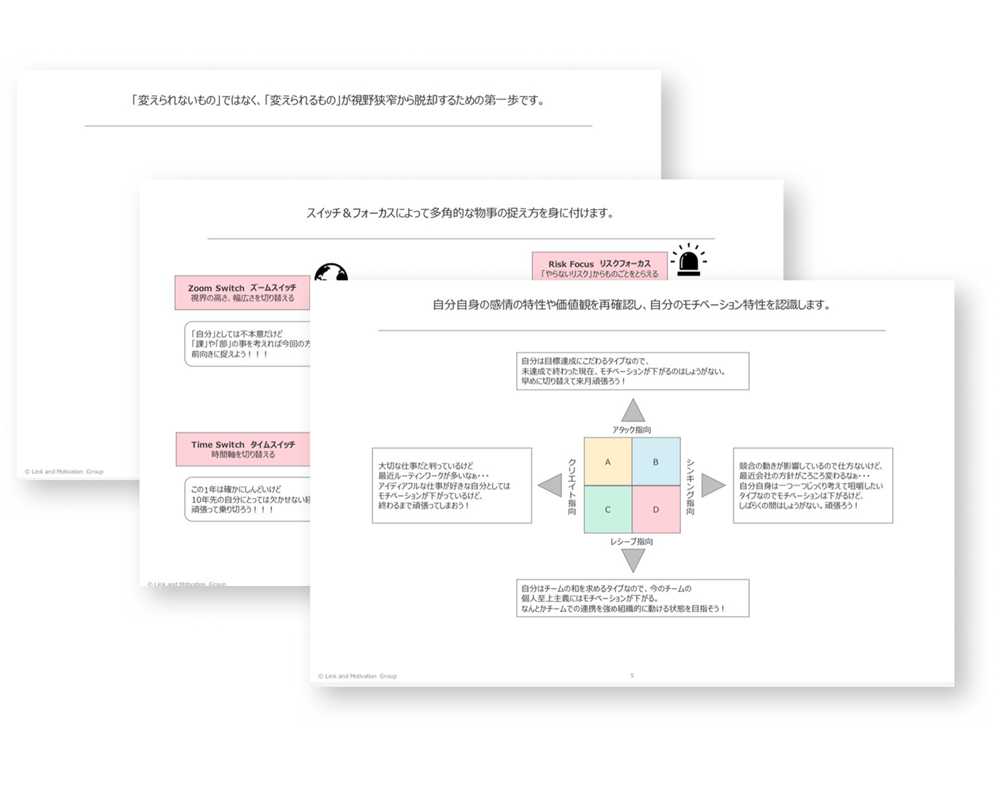 心理学などの科学的知見をもとに、モチベーションを保ち、高めるための方法を体系化。具体的なビジネスシーンなど日常業務に接続できる形で研修を設計しております。