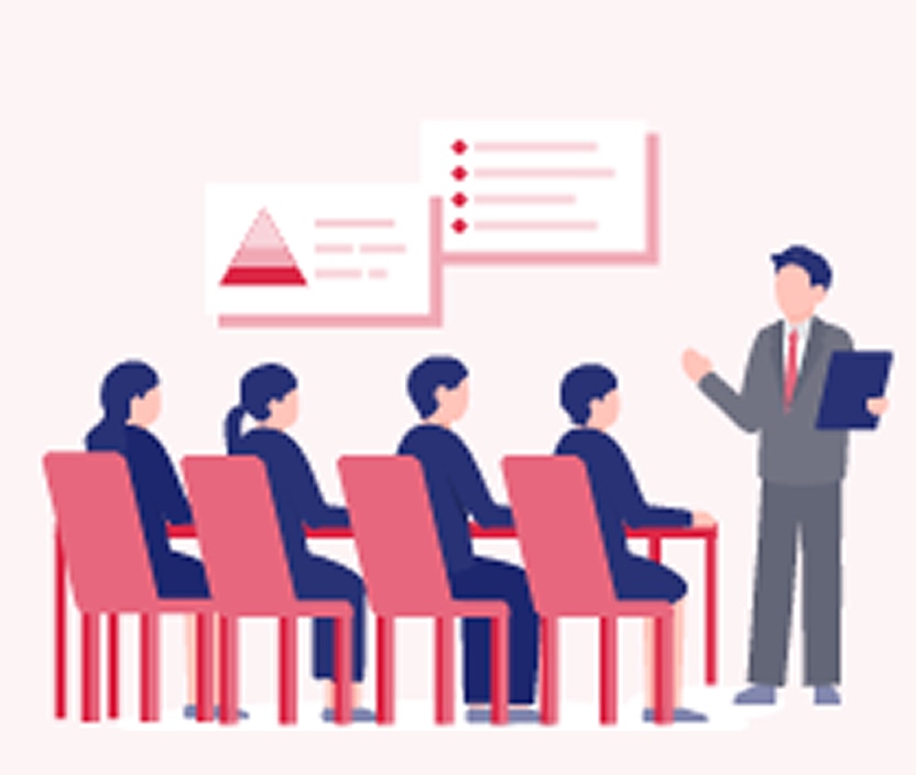 研修実施に向けた開催日や開催場所の調整を、ご担当者様にお願いする場合がございます。
