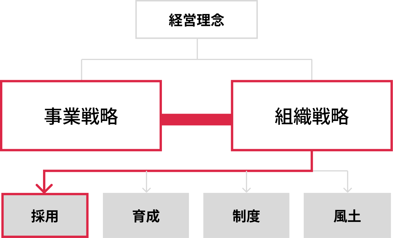 事業戦略やそれに連動した組織戦略に紐づかない人材要件は意味がありません。まずは、事業や組織のあるべき状態やそこに向けた戦略を定め、その上で「本当に採用すべき人材とはどんな人材か」を設計することが重要です。